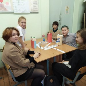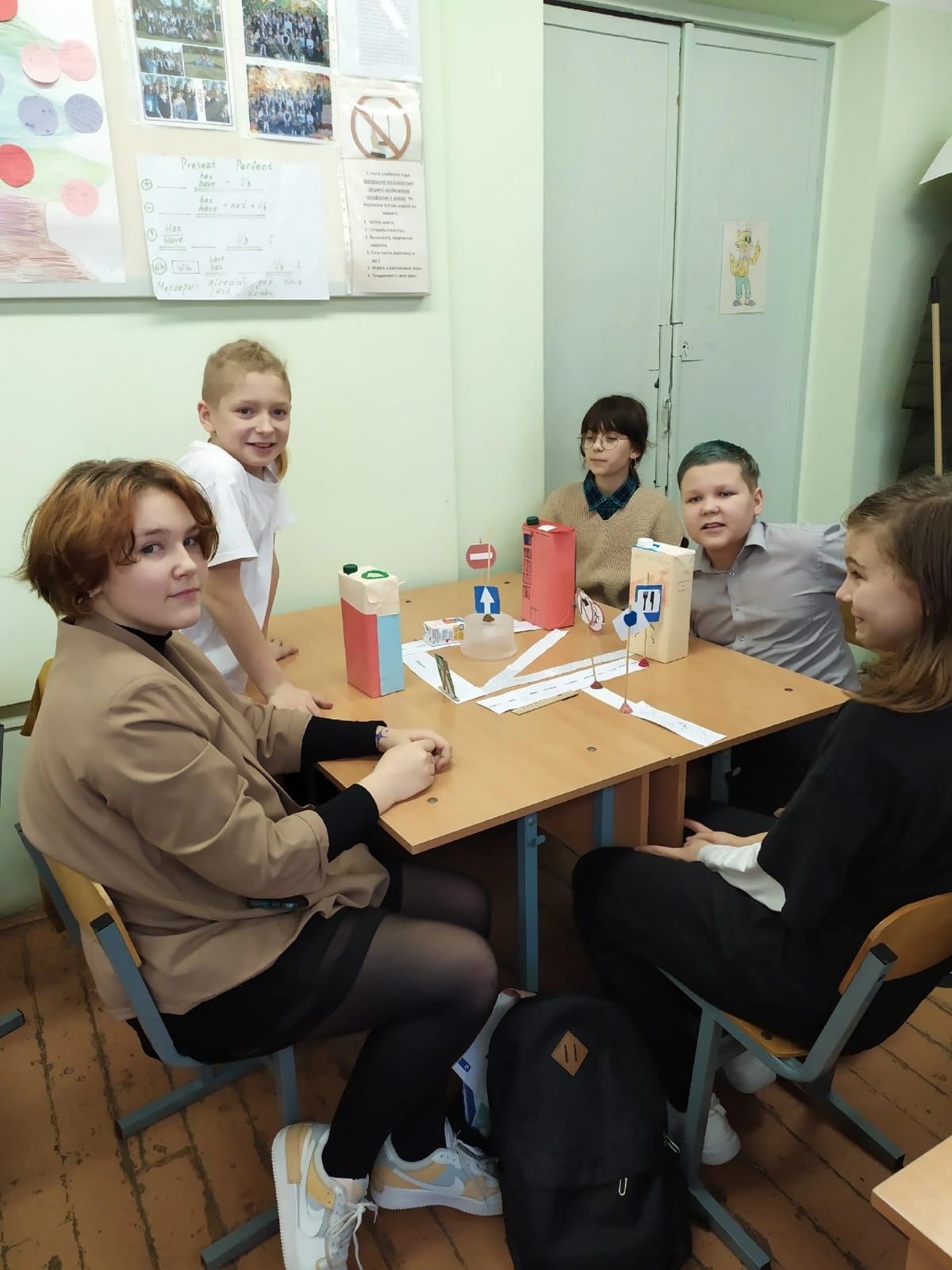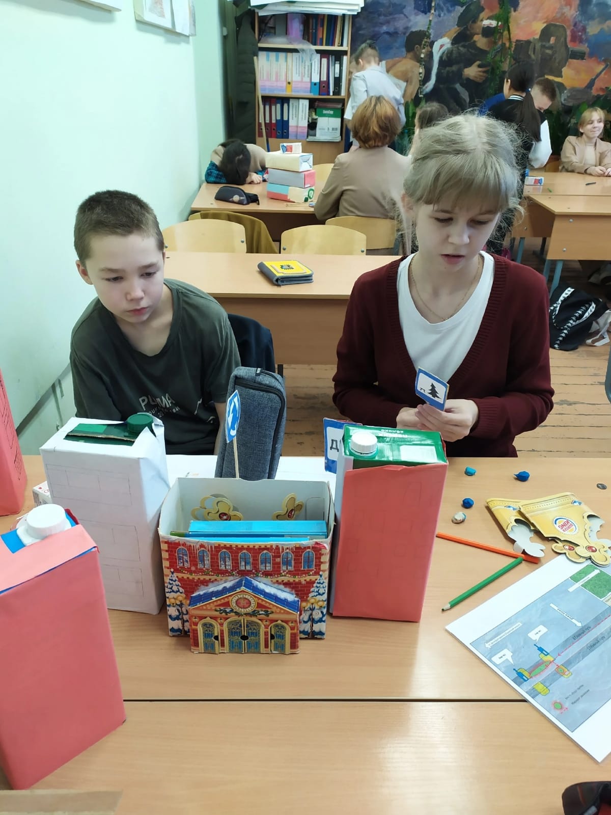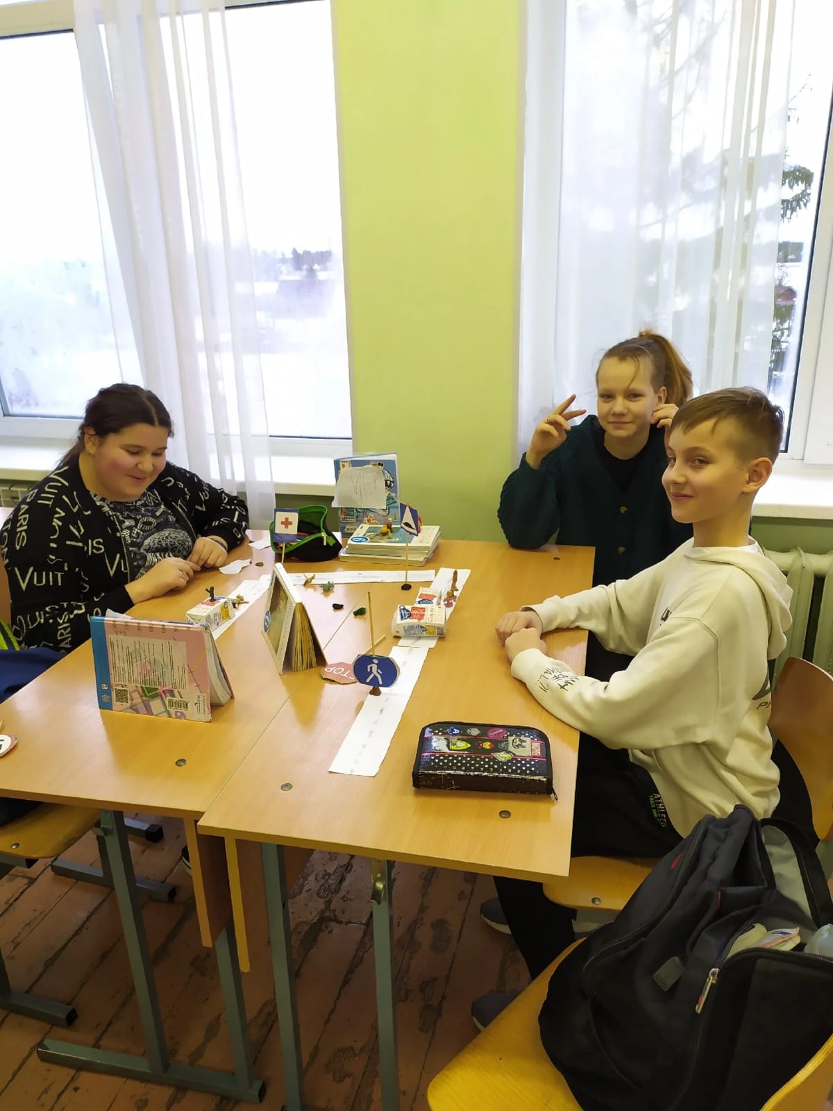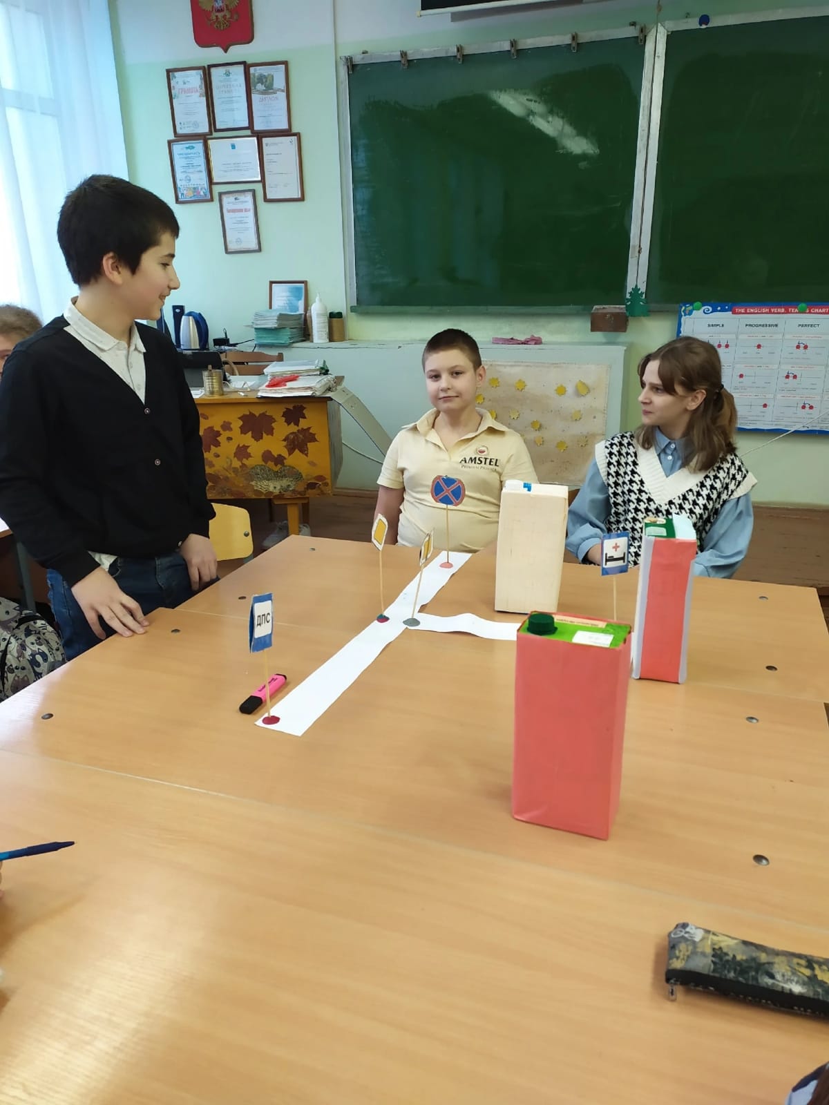 На уроке ОБЖ в 6 б классе ребята моделировали дорожную ситуацию и рассказывали ПДД.