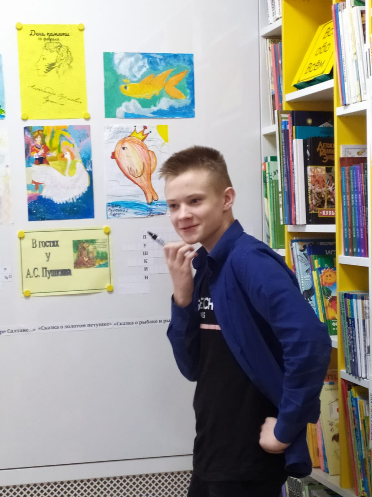Также ученики 6Б класса приняли участие в мероприятии,посвященном дню памяти Пушкина, отгадывали кроссворды, читали стихи. Спасибо нашей поселковой библиотеке!