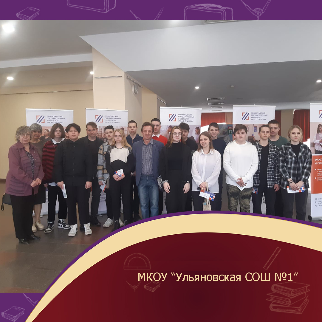 15 апреля 2023 года в рамках мероприятий профориентационной деятельности ученики нашей школы, совместно с директором Блискуном Р.Ю., советником Слепневой Т.Н., и родителями посетили и День открытых дверей ЛГУ им. А.С. Пушкина. К обучающимся с приветственным словом обратился и.о. Председателя комитета образования ТР Семёнов Алексей Игоревич, Далее была очень увлекательная видеоэкскурсия по университету.