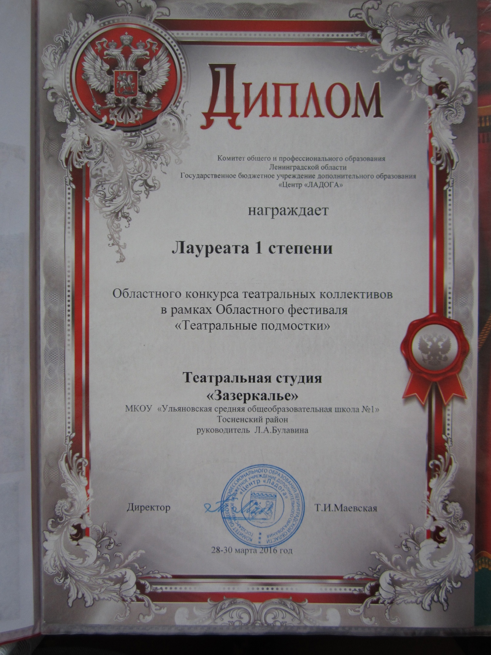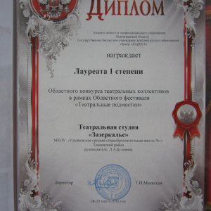 Мы, участники театральной студии «Зазеркалье» хотим рассказать вам немного о нашем дружном, творческом и веселом коллективе. Существует он уже 15 лет, с тех пор, как к нам в Ульяновскую среднюю школу пришла работать Людмила Александровна Булавина, и организовала театральную студию.