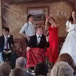 С наилучшими пожеланиями, Саша, Илья, Лиза, Григорий, Никита, Аня, Владимир, Антон, Юля, Егор, Сергей и другие участники коллектива театральной студии «Зазеркалье» Ульяновской СОШ №1.